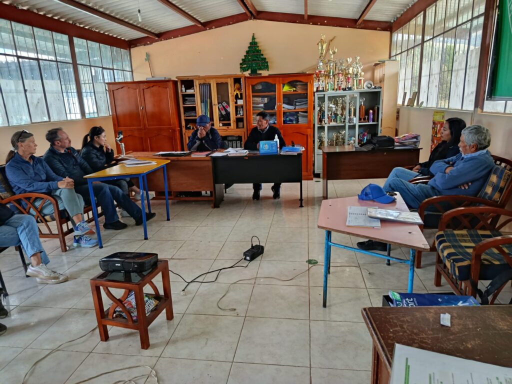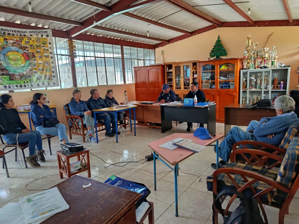 La jornada inició con una reunión en la que participaron el director del centro educativo, Sr. Antonio Escola; el profesor responsable del huerto escolar, Sr. Néstor Pilataxi; y el docente Roberto Guatemal. En representación de SOJAE estuvieron presentes José Almeida, miembro del directorio y fundador de SANE; Joselin Coyago, técnica responsable del proyecto; Yuli Rodríguez, nutricionista; Katherine Sánchez, coordinadora del proyecto Lush; Sue Strom, y Darwin Vásconez, responsable de la oficina de SOJAE en Cayambe.